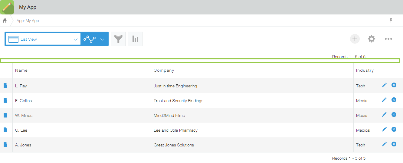 Retrieves the empty space element below the header of the record list, i.e. the space highlighted in the below image.