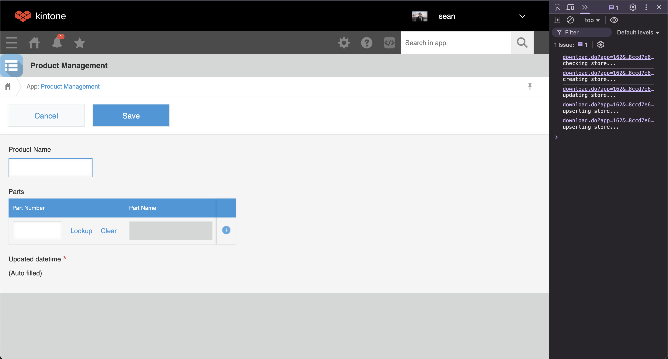 Create a record in the Product Management App to check the browser console and confirm that the customization works.